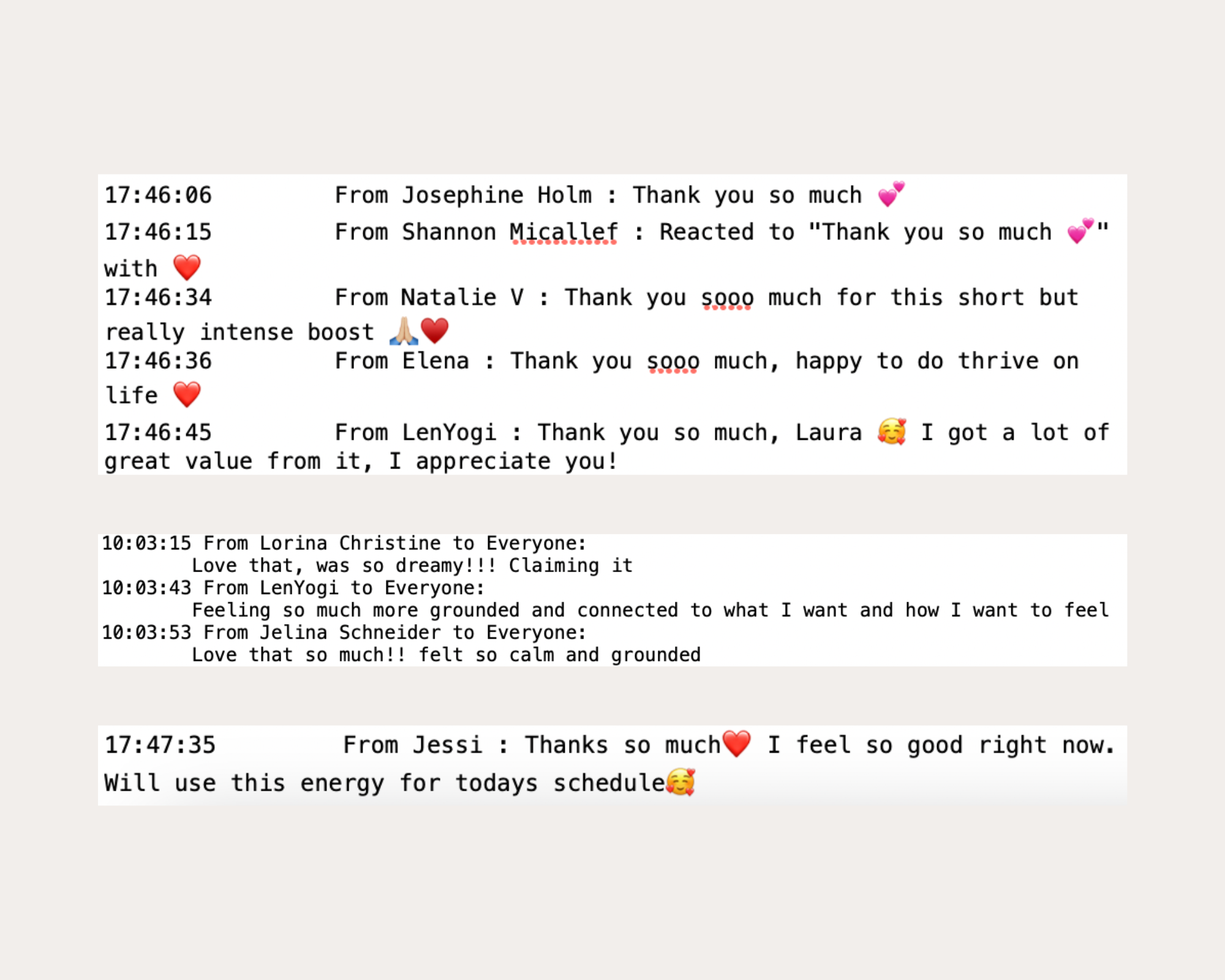 I am now more aware of which unconscious patterns have been blocking me from embodying my feminine energy in my life and business. I have taken big steps towards healing my feminine and getting rid of perfectionism tendencies. I created a better morning and evening routine and I am actually sticking to it versus before when it was on and off. I am allowing myself to listen to myself more and feel myself more. It is good and necessary to learn from those who have mastered what you want to achieve and how you want to live. The Thrive on Life program is a great place to learn from Laura!"