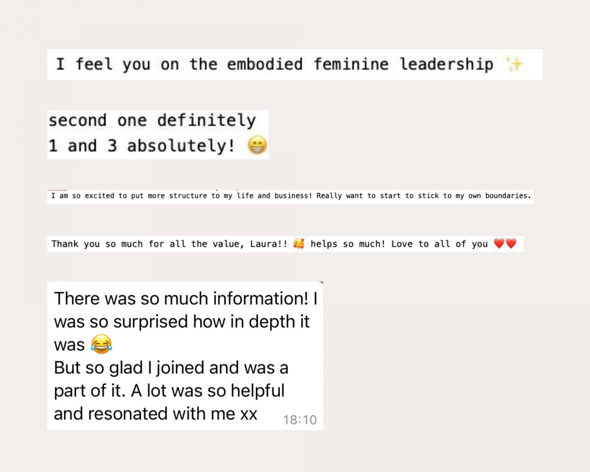 You see, I used to be in a biz mastermind that taught how to scale and build funnels — just in a very masculine way. The approach worked at first, until it didn’t — there was no more alignment and resonance from my side. That’s why I devoted myself in the past 18 months since graduating from that mastermind to create my own. And now that I worked this out, I am ready to share this with you! If the following resonates with you, this masterclass is for you: